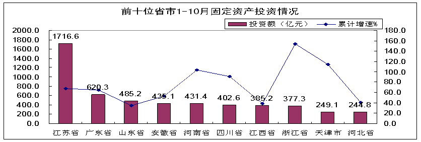 - 1-10月,東部10省市完成投資4328億元,同比增長(zhǎng)70%