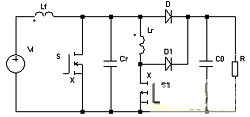 在每次主開關(guān)管S導(dǎo)通前,先導(dǎo)通輔助開關(guān)管S1,使輔助諧振網(wǎng)絡(luò)諧振。當(dāng)S兩端電容電壓諧振到零時,導(dǎo)通S。當(dāng)S完成導(dǎo)通后,立即關(guān)斷S1,使輔助諧振 電路停止工作。之后,電路以常規(guī)的PWM方式運行。該拓?fù)浣Y(jié)構(gòu)在不增加電壓/電流應(yīng)力的情況下,實現(xiàn)了S的零電壓導(dǎo)通和D的零電流關(guān)斷。但由于S1是在大 電流(接近諧振峰值電流)下關(guān)斷、大電壓(接近輸出電壓)下開通, S1處于一種非常不好的硬開關(guān)環(huán)境。