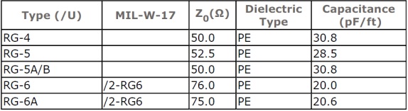 一般在測量高頻電路的時候,我們通常采用RF同軸線,比如常見的RG-58C,從直覺來看,50ohm的RF同軸線不會對測量引起太大的影響,可是如果從實際來思考,傳輸線可以看做是一系列LCRG組成的網(wǎng)絡(luò),由于CL的存在,這個網(wǎng)絡(luò)必然存在一個工作頻率范圍,由于RG的存在,這個網(wǎng)絡(luò)必然存在損耗,所以傳輸線會對測試系統(tǒng)產(chǎn)生濾波器效應(yīng),也就是說傳輸線也有一個工作頻率范圍的問題,如果我們用網(wǎng)絡(luò)分析儀去測試一根RF同軸線比如RG-58C,在很寬的頻率范圍來掃描其S21,我們會發(fā)現(xiàn)這個同軸線是一個低通濾波器,從RF線材的非理想性來看,這個測量結(jié)果應(yīng)該是意料之中的??梢栽O(shè)想,如果我們單純讓這根同軸線工作在遠(yuǎn)離其低通濾波器corner-frequency很遠(yuǎn)的地方,那么從RF匹配的角度來看,這個同軸線就不是一個50ohm或者75ohm匹配的同軸線,如果使用這根線,必然引起很大的反射損耗,此時就必須重新選擇其他RF線材。下面的表格就是一個RF同軸線的參數(shù)表格,可以看到每個feet長度時,其等效的電容大約是20~30pF,對于高頻而言,這個是比較大的電容,這就是為什么我們在進行RF測量時,必須選擇盡可能短的同軸線的原因。