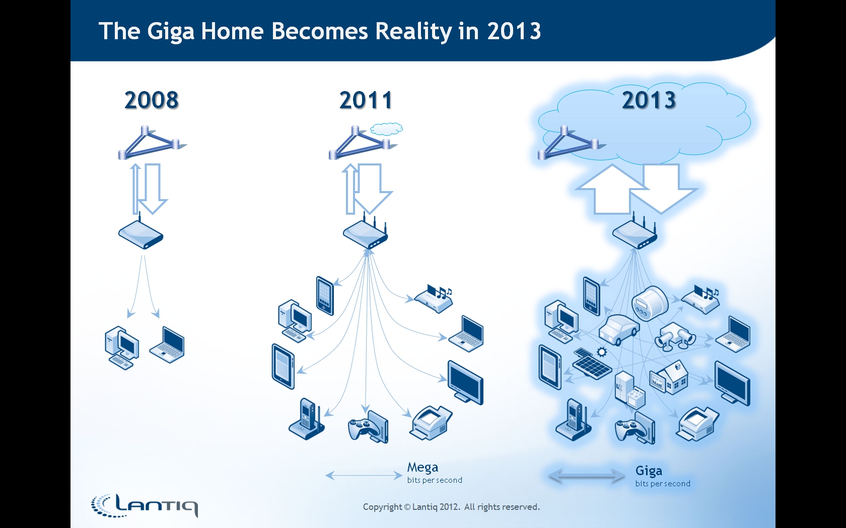 領(lǐng)特公司(Lantiq)首席執(zhí)行官Christian Wolff 今日在CeBIT全球會(huì)議上闡述:千兆家庭將在2013年成為現(xiàn)實(shí),而家庭內(nèi)部和外部的各種通信技術(shù)的一種智能混合之道將成為其推動(dòng)因素。