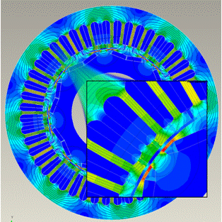 MotorSolve能為研究這些復雜的特性提供有用的分析結果。MotorSolve的有限元內核計算能考慮非線性材料、PWM脈寬調制驅動電路,并且能通過簡單的向導建立起復雜的幾何結構。