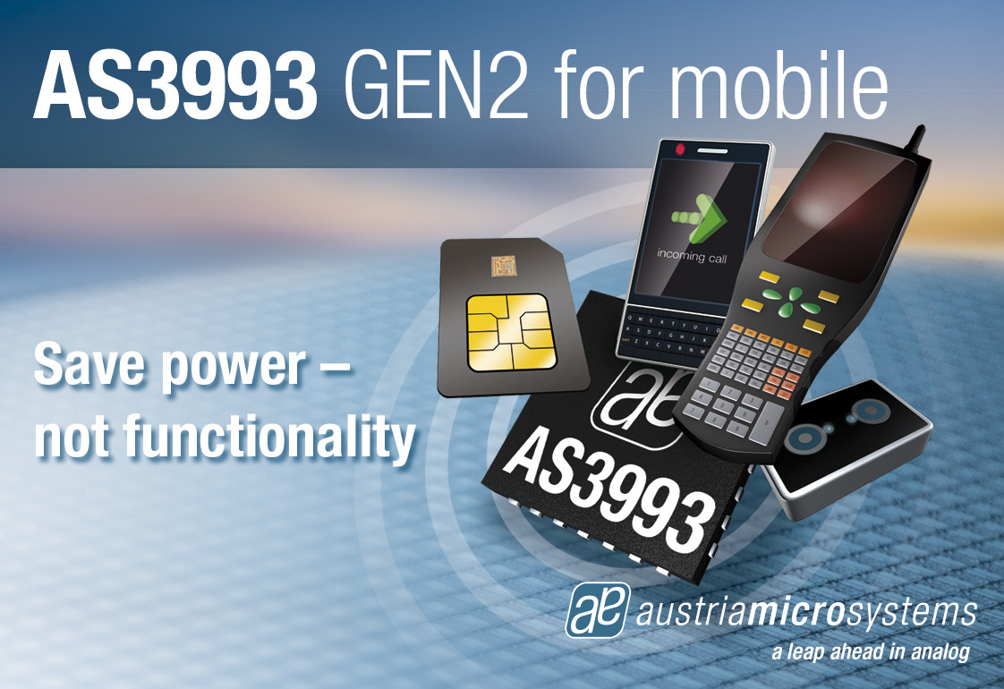 AS3993和AS3980都可以在非常低的電源供給下運行,3.3V電壓僅消耗75mA(標準情況)。該特性使這兩款先進的RFID讀卡器芯片極適合應用于便攜式以及依靠電池供電的設備,比如手機。