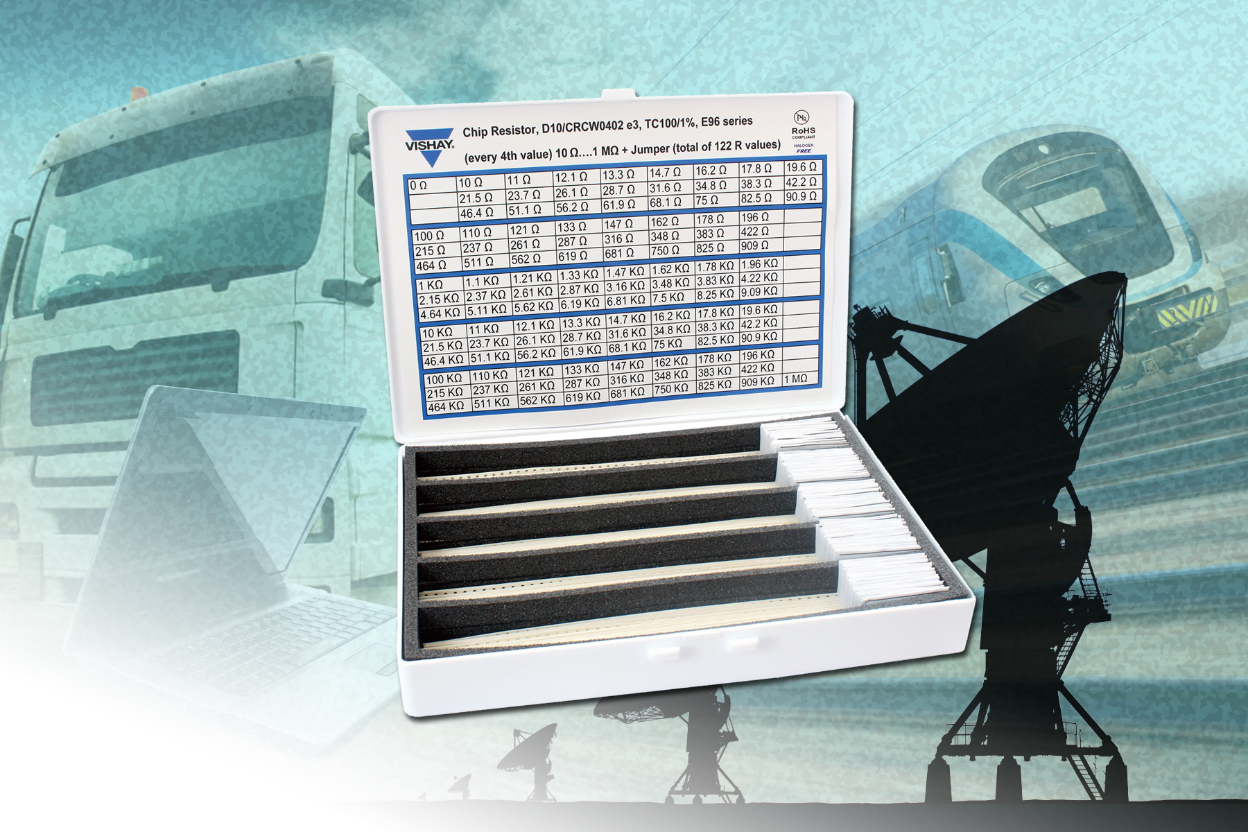 - 每款套件均具有E96系列的10Ω~1MΩ阻值