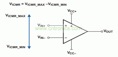 用于描述運算放大器輸入的另一個術(shù)語是“輸入共模范圍”(VICMR),或者更準(zhǔn)確的說是“輸入共模電壓范圍”。它是許多產(chǎn)品說明書中經(jīng)常用到的一個參數(shù),同時也是廣大電路設(shè)計人員最為關(guān)心的一個參數(shù)。VICMR定義了運算放大器器件正確運行所需的共模輸入電壓“范圍”,并描述了輸入與每個電源軌的接近程度。