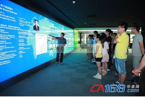 對(duì)臺(tái)達(dá)集團(tuán)有了一定了解之后,南京工程學(xué)院師生一行人來(lái)到大樓的展廳參觀(guān)。臺(tái)達(dá)展廳展出了臺(tái)達(dá)在自動(dòng)化、新能源、網(wǎng)絡(luò)動(dòng)力、軌道交通等領(lǐng)域的最新技術(shù)和產(chǎn)品。學(xué)生們對(duì)于這些產(chǎn)品表現(xiàn)出了極大的興趣,他們有的仔細(xì)研讀方案介紹,有些積極提問(wèn),紛紛用自己的方式珍惜這個(gè)難能可貴的參觀(guān)學(xué)習(xí)機(jī)會(huì)。