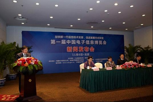 2012年11月6日下午,工業(yè)和信息化部與深圳市人民政府在北京召開新聞發(fā)布會(huì),宣布2013年4月10日至12日在深圳市共同舉辦第一屆中國電子信息博覽會(huì)。工業(yè)和信息化部電子信息司副司長、中國電子信息博覽會(huì)組委會(huì)辦公室副主任安筱鵬出席會(huì)議并介紹了籌備舉辦第一屆中國電子信息博覽會(huì)的總體情況;深圳市經(jīng)濟(jì)貿(mào)易和信息化委員會(huì)副主任、中國電子信息博覽會(huì)組委會(huì)辦公室副主任賈興東介紹了展館的總體安排;中國電子器材總公司副總經(jīng)理、中國電子信息博覽會(huì)組委會(huì)辦公室副主任兼秘書長陳雯海,深圳市平板行業(yè)協(xié)會(huì)常務(wù)副會(huì)長、中國電子信息博覽會(huì)組委會(huì)辦公室副主任兼副秘書長許生介紹招展的進(jìn)展情況。會(huì)議由工業(yè)和信息化部辦公廳新聞處處長張紅宇主持。新華社、中央人民廣播電臺、中央電視臺、中國電子報(bào)、人民郵電報(bào)、中國工業(yè)報(bào)等中央媒體和業(yè)內(nèi)媒體,以及業(yè)內(nèi)相關(guān)行業(yè)協(xié)會(huì)和重點(diǎn)企業(yè)參加了新聞發(fā)布會(huì)。