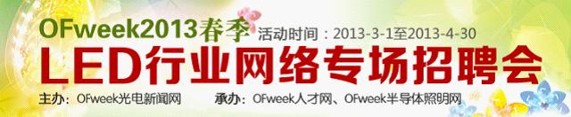 導讀:新年招聘旺季序幕已經(jīng)拉開,您是否正在茫茫人海大潮中苦尋理想職位?或意欲辭職蠢蠢欲動?新年伊始,OFweek為你推薦LED行業(yè)的好工作!3月1號~4月30日,由中國高科技行業(yè)綜合門戶網(wǎng)站-OFweek主辦,OFweek人才網(wǎng)、OFweek半導體照明網(wǎng)承辦的“OFweek2013春季LED行業(yè)網(wǎng)絡專場招聘會”日前啟動。