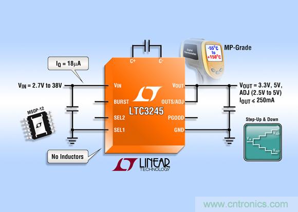 凌力爾特推出通用型 250mA 高電壓降壓-升壓型充電泵 LTC3245 的新型高可靠性 MP 級(jí)、較寬溫度范圍版本。MP 等級(jí)器件具有 -55°C 至 +150°C 的工作結(jié)溫范圍。LTC3245 采用開關(guān)