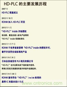 ROHM于2012年10月加入“HD-PLC”聯(lián)盟,并領(lǐng)先于全世界開始著手開發(fā)符合“HD-PLC” inside標準的基帶IC。