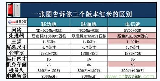 處理器方面,搭載了高通MSM8628四核1.6GHz A7架構處理器,架構方面和移動版、聯(lián)通版紅米手機相同,主頻提高了100MHz,性能方面也有所提升。內存方面依舊維持1GB RAM。