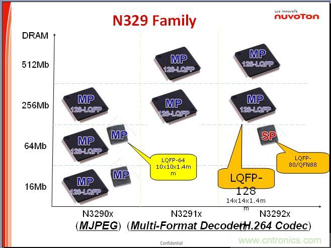 這個(gè)是N329的線型表,最主要是90系列和91、92系列,每一個(gè)都有不同的系列,最主要的區(qū)別是存儲(chǔ)卡的大小,從1X16、4X16、16X16,這邊是32X16,也有16X16的,但是接口大同小異,封裝都是128P,后續(xù)也有80、88P的。