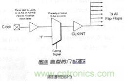 這 是最廣泛使用的方法,即在器件末使用時(shí)截?cái)鄷r(shí)鐘來(lái)降低功耗。然而正確地截?cái)鄷r(shí)鐘十分重要。門控信號(hào)與門控邏輯應(yīng)正確地設(shè)計(jì),以消除時(shí)鐘線上的任何毛刺。再 者,門控邏輯會(huì)增加時(shí)鐘的延時(shí),影響建立時(shí)間與保持時(shí)間。由于抗熔斷是一種極快速的技術(shù),引入的延時(shí)很小且容易控制。在使用時(shí)鐘門控時(shí),用戶應(yīng)仔細(xì)地安置 門控邏輯,將時(shí)鐘網(wǎng)絡(luò)的延時(shí)降低到最小限度。典型的門控邏輯如圖3所示。