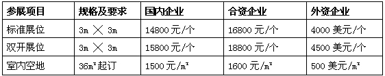 標(biāo)準(zhǔn)展位配置包括:每個(gè)標(biāo)準(zhǔn)展位三面墻板、二支射燈、一張咨詢(xún)桌、兩把椅子、地毯、220V交流電源插 座一只,中英文楣板等。室內(nèi)光地展位無(wú)任何配置:(需36㎡起租)。