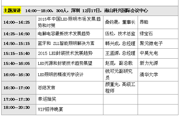 其它我就不多說,請看下面最新的研討會議程,歡迎大家撥冗前來與各位專家教授研討,共商中國LED照明產(chǎn)業(yè)健康發(fā)展之道。