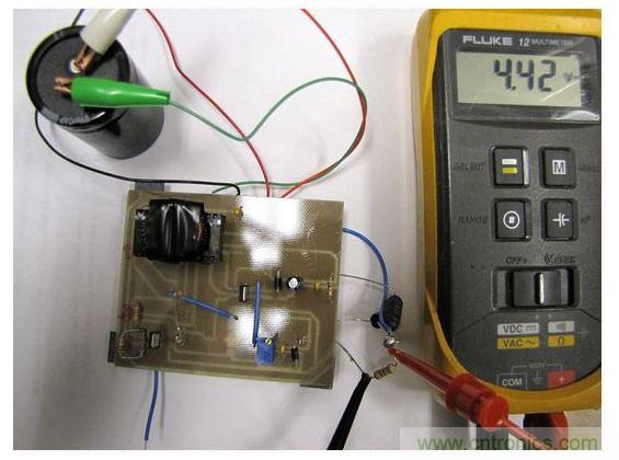 Q2(IRLU3103)是用于調(diào)節(jié)的另外一個MOSFET。Q2的閾值電壓用于調(diào)節(jié)輸出電壓。當輸出達到5V時,由R1和R2組成的分壓電路使得Q2導通,振蕩停止,進而導致輸出電壓下降。由于這個閾值電壓的變化不是很急劇,調(diào)節(jié)效果通常不是很好。