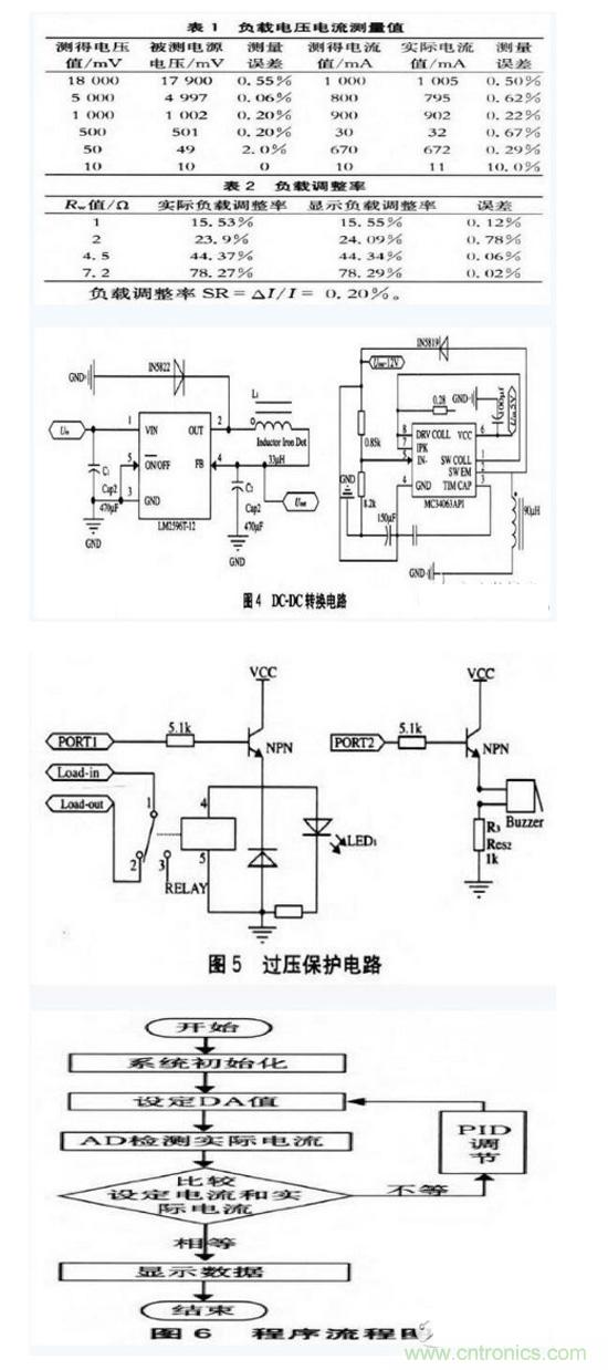 借助16位模數(shù)轉換器ADS1115將電壓電流回送至單片機。通過DA控制恒流源的電流,借助PID不斷修正電流至設定值,以保證電流的恒定且可調,達到步進10mA的要求,并有過壓保護功能。在12864液晶上顯示實時電壓電流值和設定電流值及負載調整率,電子負載具有優(yōu)良的精度、穩(wěn)定性和動態(tài)響應,并結合精確的軟件控制,實現(xiàn)了電源測量的快速和準確。原理簡單,可行性高,成本低。