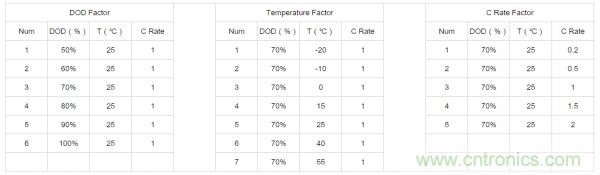 在循環(huán)測試上可以根據(jù)DOD、溫度、倍率這三個重要影響因素設(shè)計一組“單因素實驗”。