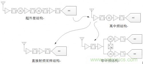 十年前,大多數(shù)無線電設(shè)備建立在較為基礎(chǔ)的超外差結(jié)構(gòu)上,且具有多個(gè)下變頻級(jí)。當(dāng)時(shí),我們見證了高 IF (中頻) 結(jié)構(gòu)中出現(xiàn)單個(gè)下變頻級(jí)的變化。這得益于ADC帶寬、采樣速率與性能等的顯著改善,這些顯著的改善使第二或第三奈奎斯特區(qū)域的信號(hào)采樣得以實(shí)現(xiàn)。ADS62P45 ADC便是引領(lǐng)這次變化的一個(gè)典型代表?,F(xiàn)在,ADC技術(shù)進(jìn)一步得到改進(jìn)與提升,使得無線電中最后一個(gè)下變頻級(jí)也得以消除,從而支持直接