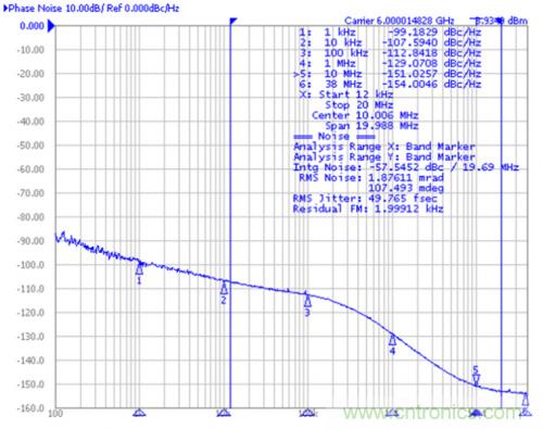 圖3:LMX2592在6GHz輸出頻率的抖動(dòng)性能