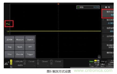 設置觸發(fā)方式為【普通】,將觸發(fā)電平調(diào)到合適的位置,等待小概率異常信號到來。