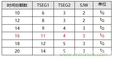 表2.LS_CAN可選時間份額與同步跳轉(zhuǎn)帶寬