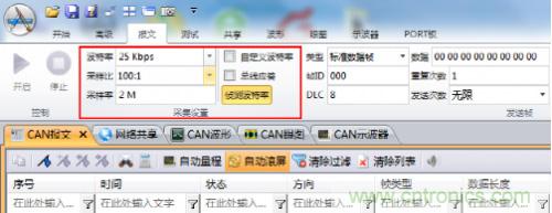 l自動波特率識別:采用CANScope自動偵測波特率的功能,對CAN卡的波特率進行識別,識別結(jié)果為25kbps;