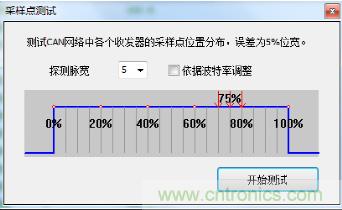 l采樣點測試:采用CANScope對當(dāng)前波特率下CAN卡的采樣點進行測試,測試結(jié)果為75%;