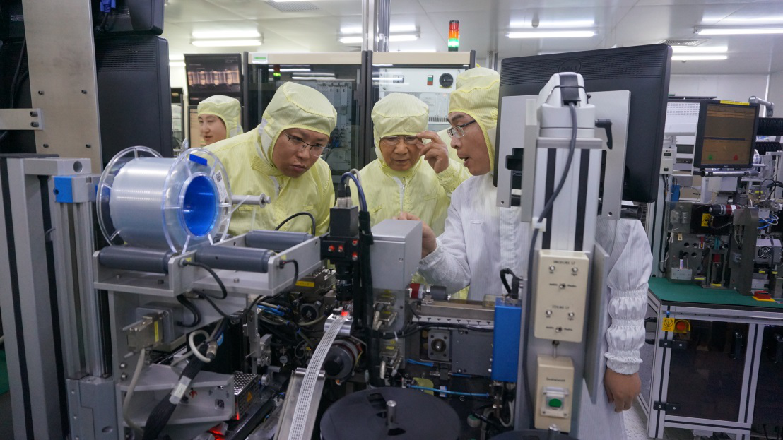 隨后,陳清泰理事長一行還參觀了英飛凌無錫工廠生產(chǎn)現(xiàn)場,向工程師仔細(xì)詢問各種器件的用途、制造及測試方法,并重點了解了如何滿足汽車行業(yè)的可靠性和追溯性等要求。陳理事長在深入了解了英飛凌針對所有制造數(shù)據(jù)和測試結(jié)果追溯和存儲的流程,且積極使用大數(shù)據(jù)在生產(chǎn)流程中進行質(zhì)量管控的做法后,對比表示非常滿意。