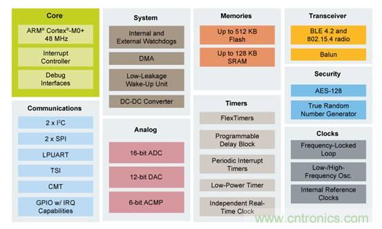 圖2,NXP KW41多協(xié)議無(wú)線MCU,可以同時(shí)運(yùn)行BLE和Thread兩套協(xié)議棧