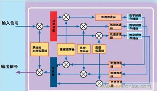 接著,修正的數(shù)字信號(hào)轉(zhuǎn)換為模擬射頻信號(hào)。通過(guò)使用與初始頻率轉(zhuǎn)換同樣的本地振蕩器,這個(gè)信號(hào)會(huì)被頻繁地轉(zhuǎn)換為接收頻率。降頻轉(zhuǎn)換和升頻轉(zhuǎn)換時(shí),使用唯一的振蕩器保持了信號(hào)相位的相干性。