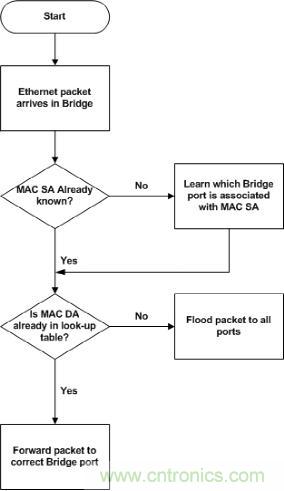 在圖1中,如果傳入幀的源地址(SA)以前沒有記錄,則將其與幀的傳入端口號一起添加到地址數(shù)據(jù)庫中。如果目標地址(DA)已經存在于網橋的查找表中,則數(shù)據(jù)包會相應地轉發(fā),否則幀將被泛洪處理。多年來,管理L2所用協(xié)議的IEEE標準(如802.1 MAC橋、VLAN和基于端口的網絡訪問控制標準)都集中在以太網幀的前16個字節(jié)。這些標準也在不斷發(fā)展,最近增加的包括以太網音視頻橋接技術(AVB)和時間敏感網絡標準(如802.1AS)。特別是,在汽車環(huán)境中對確定性網絡的需求正變得越來越急迫,以確保網絡中及時和可靠的數(shù)據(jù)傳輸。將所有ECU鎖定在單個主時鐘源并保持AV內容質量只是其中兩個例子,更多增強的功能還在引入以便于檢查OSI 3層信息,例如IPv4 / IPv6數(shù)據(jù)包優(yōu)先級和IPv4 / IPv6偵聽。