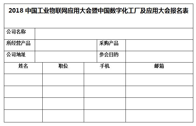 2018中國(guó)工業(yè)物聯(lián)網(wǎng)應(yīng)用大會(huì)暨中國(guó)數(shù)字化工廠及應(yīng)用大會(huì)報(bào)名表