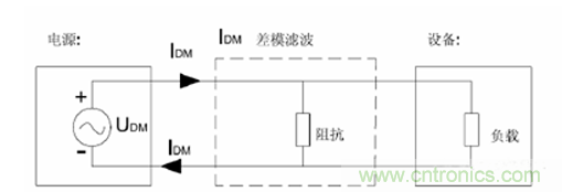 差模干擾是指兩條電源線之間(wire to wire)的,主要通過選擇合適的電容(X電容,也稱安規(guī)電容),和差模