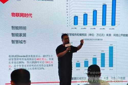 上海浦東智能照明聯(lián)合會(huì)秘書長代照亮則為現(xiàn)場觀眾帶來了物聯(lián)網(wǎng)時(shí)代智能照明領(lǐng)域的最新進(jìn)展。根據(jù)最新數(shù)據(jù)顯示,2017年全球智慧照明市場規(guī)模接近46億美元,年成長率高達(dá)95%,預(yù)計(jì)2020年可達(dá)134億美元,其中智慧家居照明的應(yīng)用將會(huì)逐漸普及,預(yù)估2020年占比將增至31%。