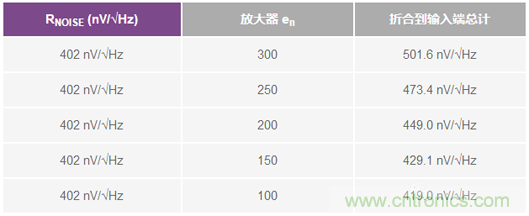 表2. 運(yùn)算放大器噪聲貢獻(xiàn)