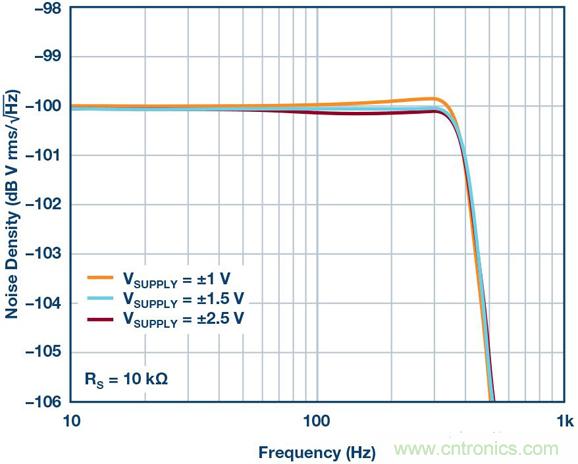 圖6. 各種電源電壓對應(yīng)的輸出噪聲密度