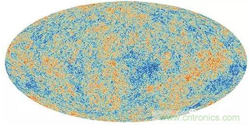 圖2:2013年歐洲航天局的普朗克衛(wèi)星拍攝到的宇宙微波背景輻射圖,該圖顯示了天空中的微小變化。(圖片來源:ESA/Planck Collaboration,通過Space.com網(wǎng)站)
