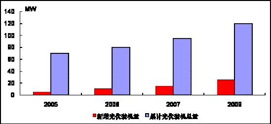 圖 2 2005-2008年中國太陽能電池裝機量