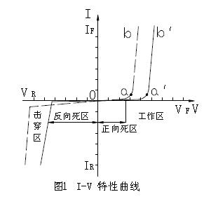 為反向飽和電流。V>0 時(shí),V>VF 的正向工作區(qū)IF 隨VF 指數(shù)上升,