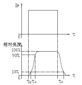 1.響應(yīng)時(shí)間從使用角度來看,就是LED點(diǎn)亮與熄滅所延遲的時(shí)間,即圖3中tr 、tf 。圖中t0 值很小,可忽略。