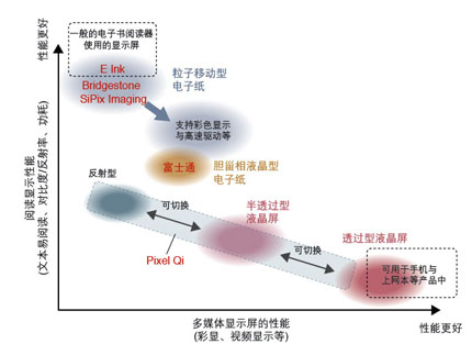 具體來(lái)說(shuō),日本Bridgestone公司與美國(guó)SiPix Imaging公司等多家廠商已經(jīng)開(kāi)始為電子書(shū)閱讀器提供電子紙。美國(guó)初創(chuàng)企業(yè)Pixel Qi公司也開(kāi)始提供具有專門設(shè)計(jì)的電子紙顯示模式的液晶顯示屏。