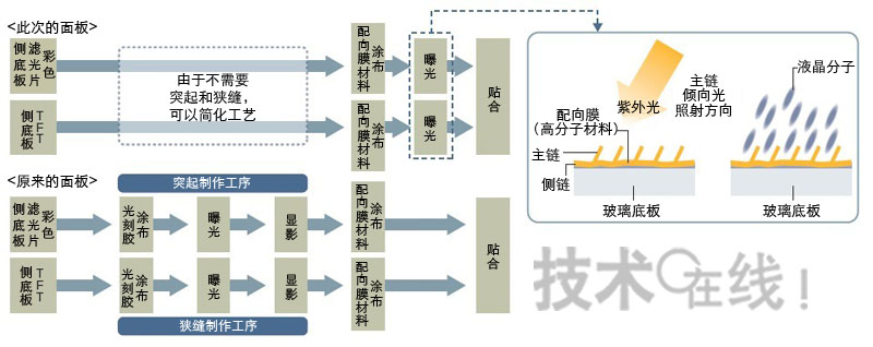 需代之以向配向膜照射紫外光的工序。(圖根據(jù)夏普的資料制成)