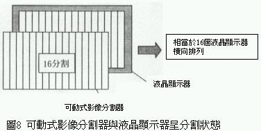 上述新型電子式影像分割器與液晶顯示器的控制方法與結(jié)構(gòu)都非常簡單,因此它具有低價化的潛力。