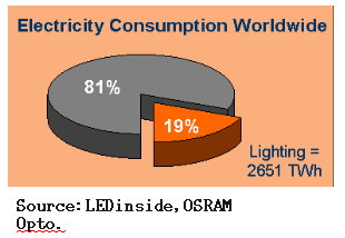 - 照明占全球電力消耗比重達19%