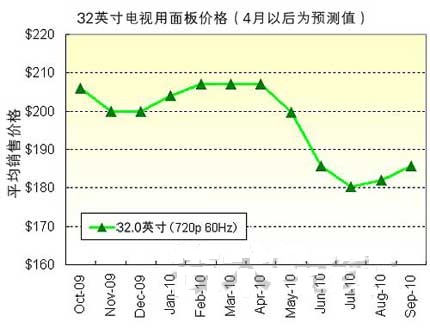 - 預(yù)計2010年第三季度32英寸用面板價格為180~185美元左右