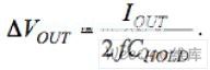 在第二階段,C1+連接到輸出,放電電流(電流大小與前面的充電電流相同)通過C1流到負載。在這個階段,輸出電容電流的變化大約為2IOUT。盡管這個電流變化應(yīng)該能產(chǎn)生一個輸出電壓變化為2IOUTESRC_HOLD,使用低ESR的陶瓷電容使得這種變化可以忽略不計。此時,CHOLD按下面的電量線性電位充電︰