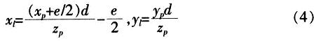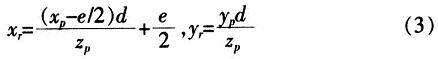 將式(2)帶入式(1)得點P在投影平面的坐標(biāo)(xr,yr):