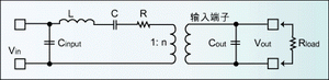 要預(yù)測(cè)PZT在系統(tǒng)中的性能,有必要建立它的電路模型。圖1所示的電路模型通常用于描述長(zhǎng)模式PZT在基本諧振頻率附近的性能。許多PZT制造商都基于在各種頻率和輸出負(fù)載下的測(cè)量結(jié)果提供該模型的元件值,具體元件值取決于PZT的構(gòu)造。初級(jí)電極的多層結(jié)構(gòu)和材料電介質(zhì)常數(shù)形成了一個(gè)大的主級(jí)輸入電容(Cinput)。由于次級(jí)的單層結(jié)構(gòu)和主級(jí)電極和次級(jí)電極之間的距離,輸出電容要小很多。
