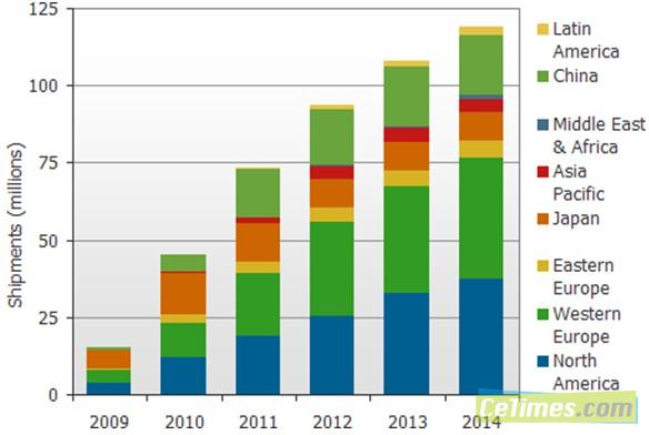 經(jīng)過針對許多一線品牌2010年新產(chǎn)品線的調(diào)查分析,報(bào)告中指出,全球地區(qū)包含日本、北美、歐洲、中國和印度等地,已經(jīng)有55%的電視機(jī)型擁有DLNA(數(shù)字生活網(wǎng)絡(luò)聯(lián)盟,Digital Living Network Alliance)的認(rèn)證。整體而言, 聯(lián)網(wǎng)電視在2010年中預(yù)計(jì)將有4千5百萬臺的出貨量,約占有全年度所有電視出貨量的19%。DisplaySearch更進(jìn)一步預(yù)測,預(yù)計(jì)到了2014年時(shí)聯(lián)網(wǎng)電視將會(huì)有約1億1千9百萬臺的出貨量,占有總出貨量的42%之多。