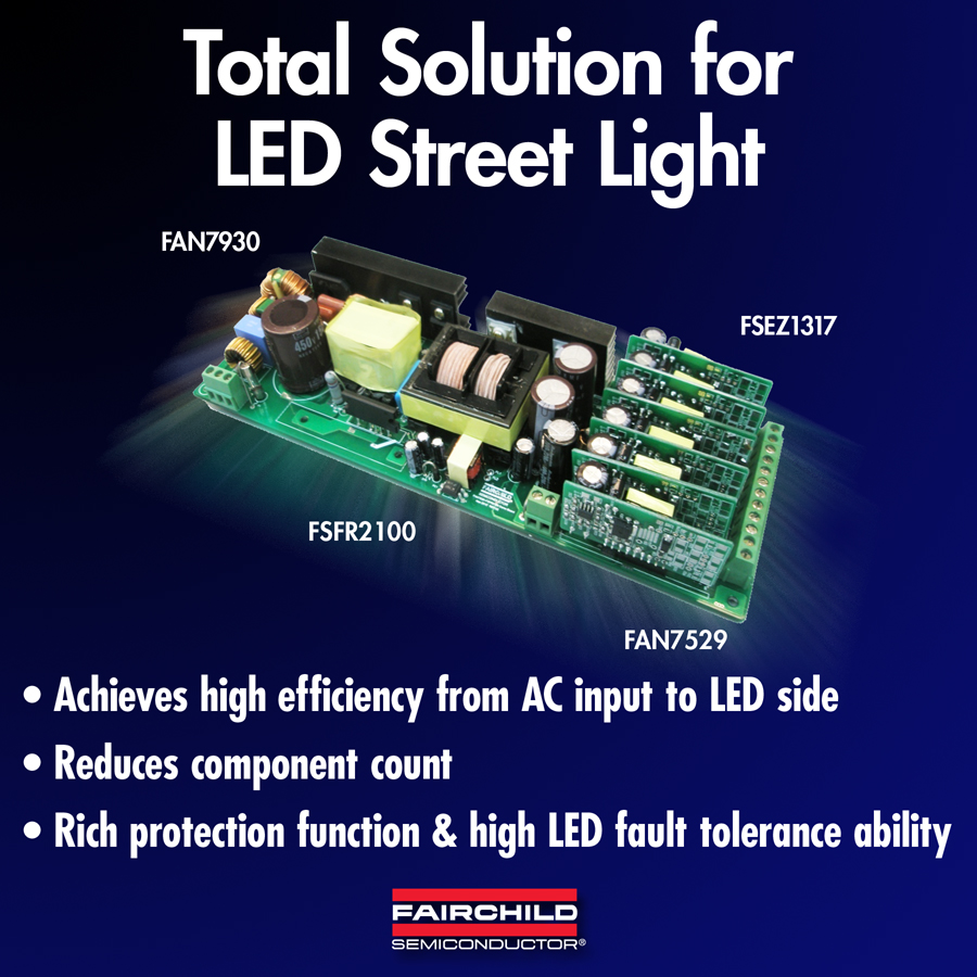 - 飛兆半導(dǎo)體公司開(kāi)發(fā)出一款完整的LED路燈照明解決方案
